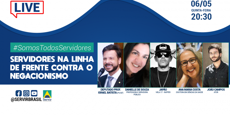 O bate-papo será mediado pelo presidente da Servir Brasil, o deputado federal Professor Israel Batista (PV-DF). O rapper Japão, conhecido pelo grupo Viela 17, e o ator João Campos estão entre os convidados da noite. Completam o time da roda de conversa, Ana Maria Costa, doutora em Ciências da Saúde, integrante da ABRASCO (Associação Brasileira de Pós Graduação em Saúde Coletiva) e diretora do CEBES (Centro Brasileiro de Estudos de Saúde), e Danielle de Souza, especialista em Educação, professora e servidora pública.