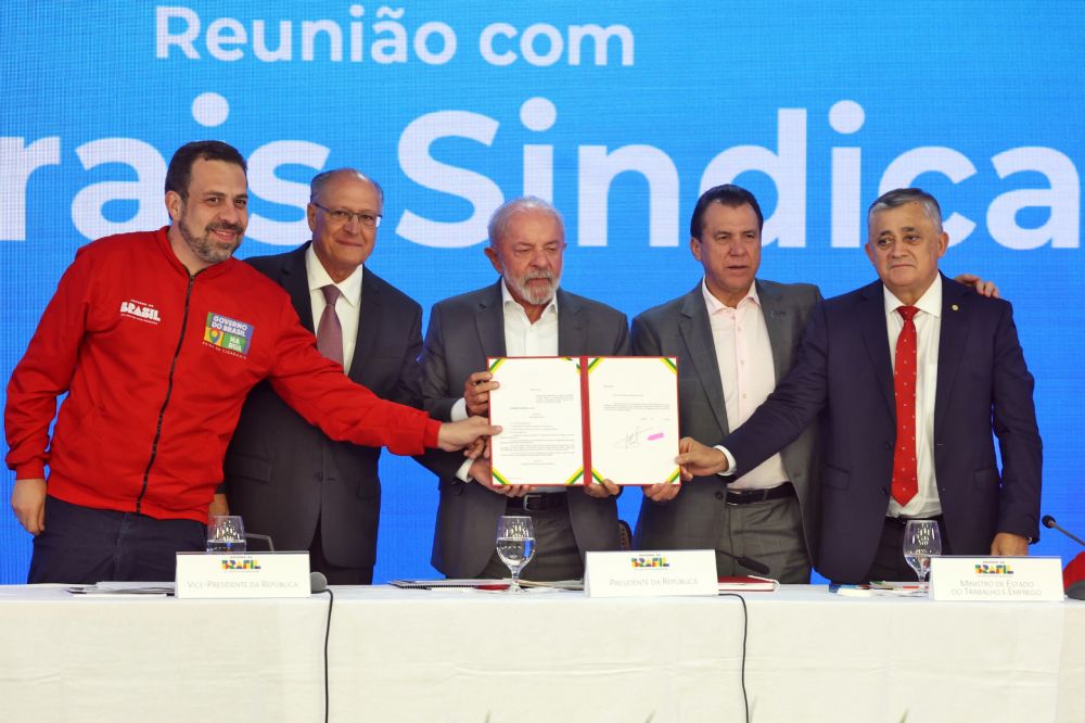 A assinatura ocorreu há pouco durante reunião com representantes das centrais sindicais, em Brasília, após a Marcha da Classe Trabalhadora. O texto será encaminhado ao Congresso Nacional para análise e deliberação.